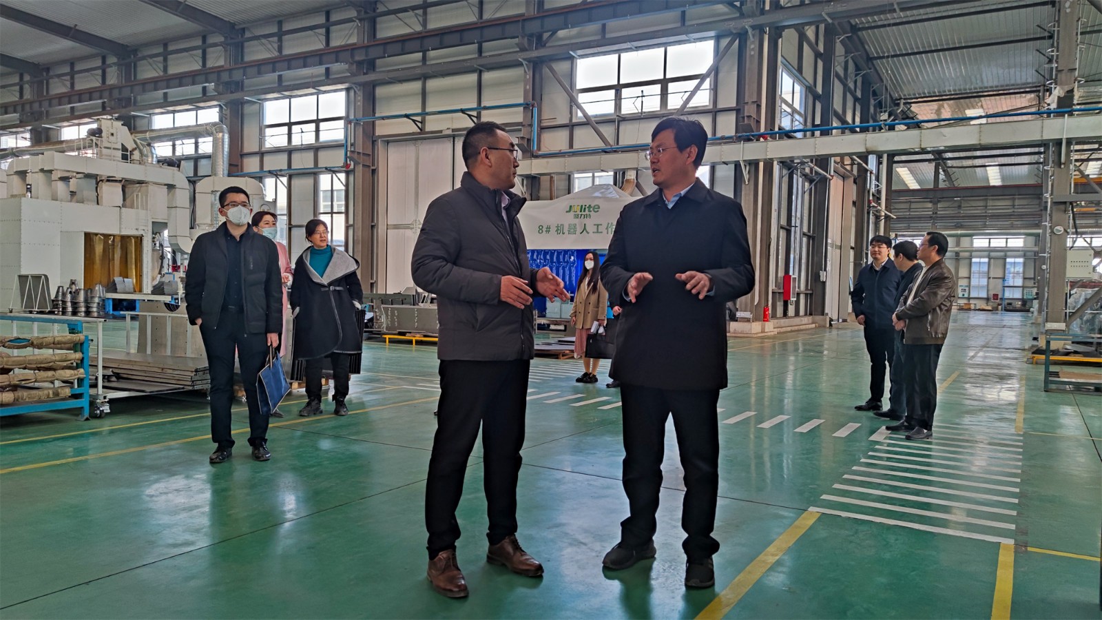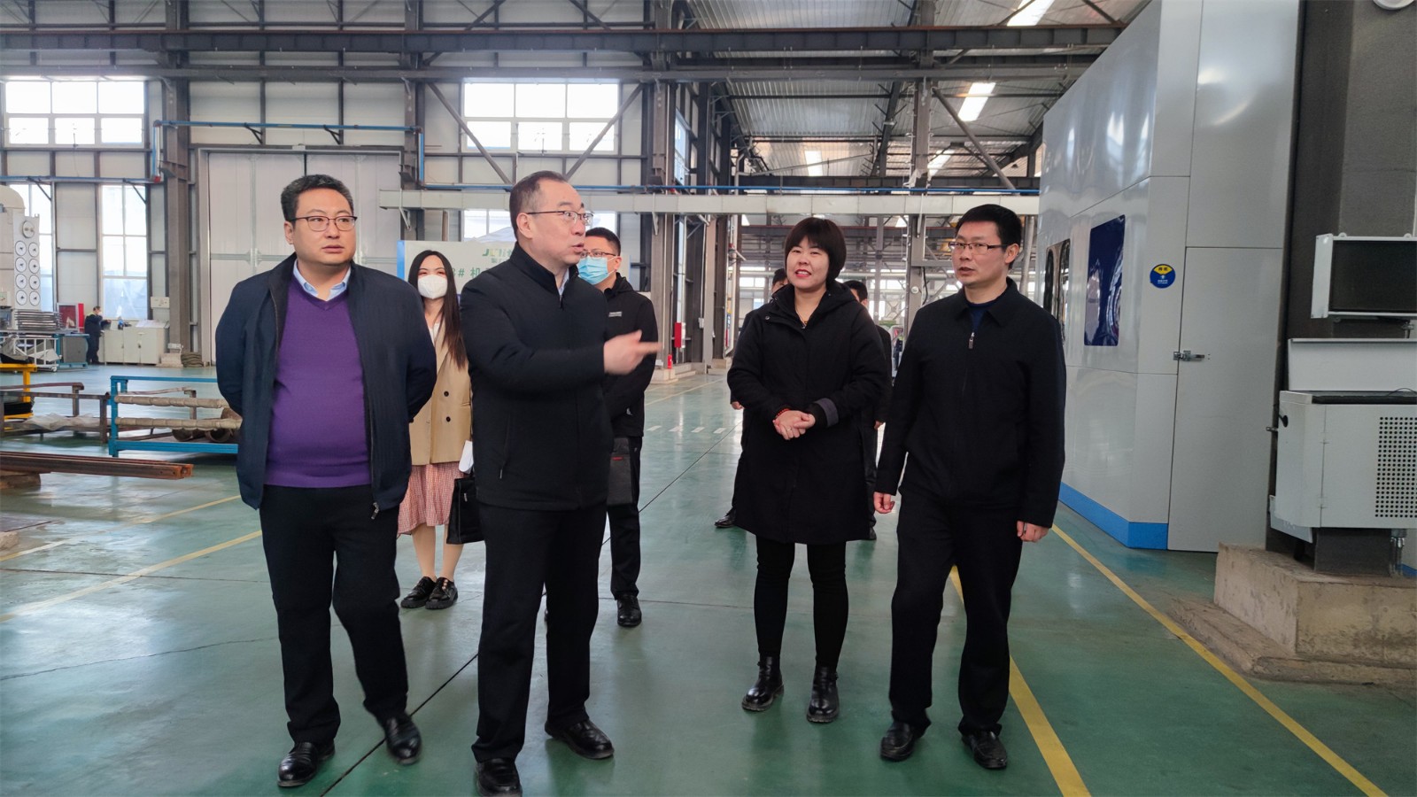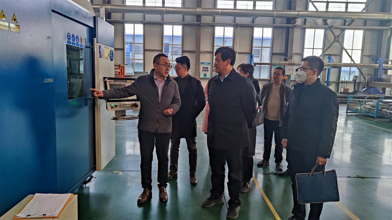尹處長(zhǎng)一行來(lái)到工廠(chǎng)廠(chǎng)房,參觀(guān)了生產(chǎn)現(xiàn)場(chǎng),詳細(xì)詢(xún)問(wèn)了項(xiàng)目投產(chǎn)情況。高總經(jīng)理向尹處長(zhǎng)匯報(bào)了聚力特工業(yè)設(shè)備智能制造產(chǎn)業(yè)化項(xiàng)目的建設(shè)進(jìn)程、生產(chǎn)能力和發(fā)展前景,并對(duì)各級(jí)政府在疫情期間全力保障企業(yè)的生產(chǎn)生活表示了衷心的感謝。