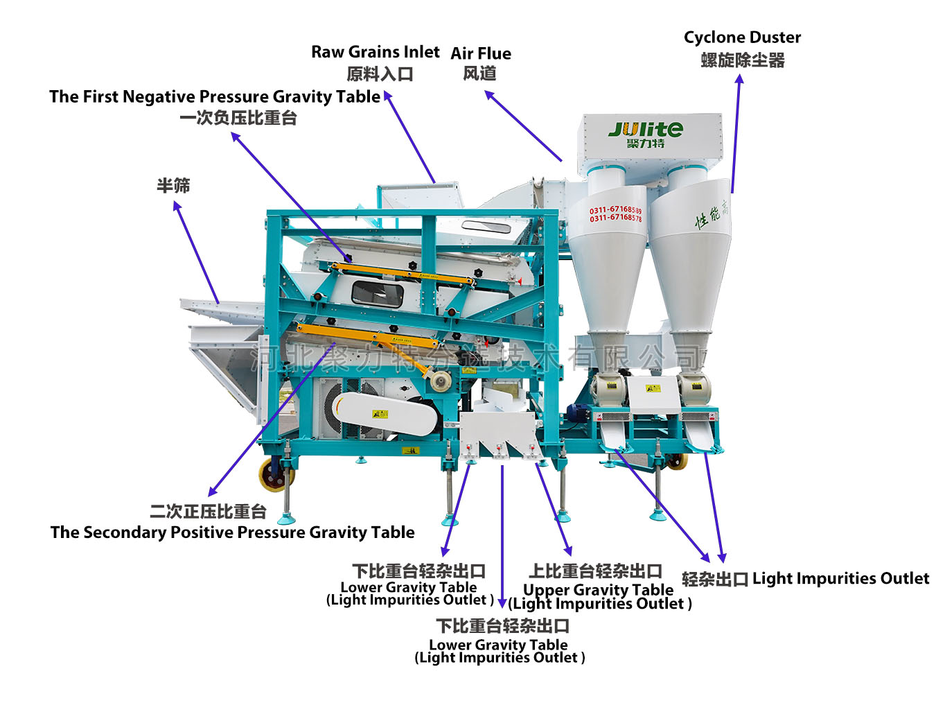 2、凈度高:粉塵、糠殼、秸稈等雜質(zhì)的去除率≥99%,秕籽、霉變等雜質(zhì)去除率≥98%;