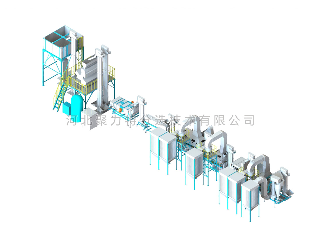 豆類清理生產(chǎn)線由風篩清選機、磁力選土機、比重去石機、比重精選機、拋光機、振動分級篩、定量包裝秤、脈沖除塵器、布袋除塵器、提升機和其他輔件組成。