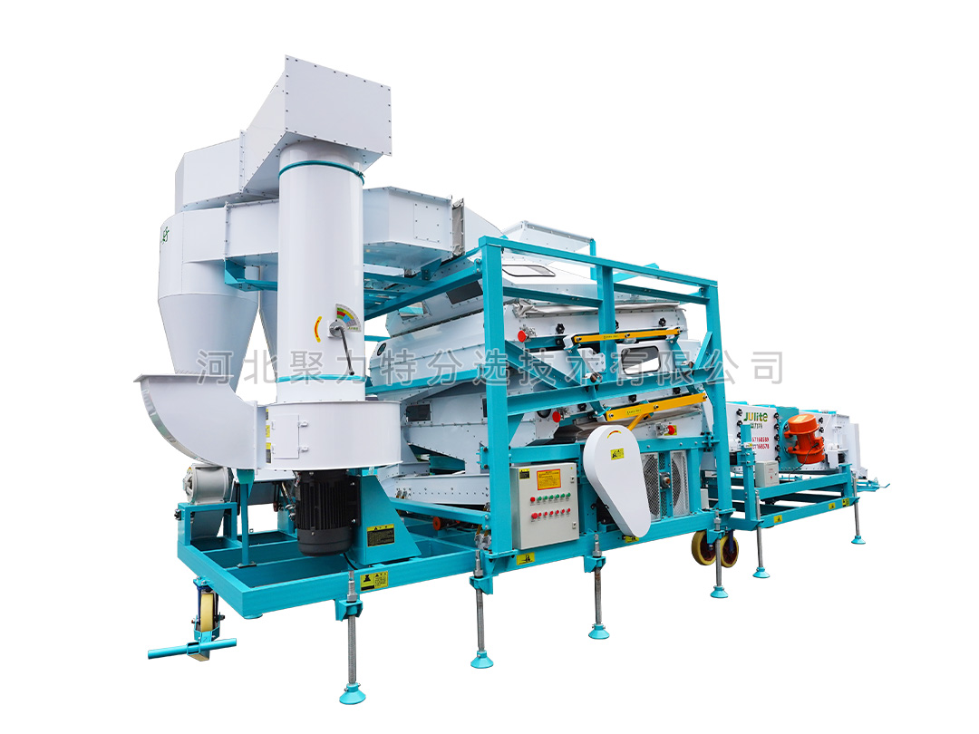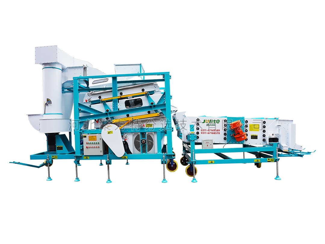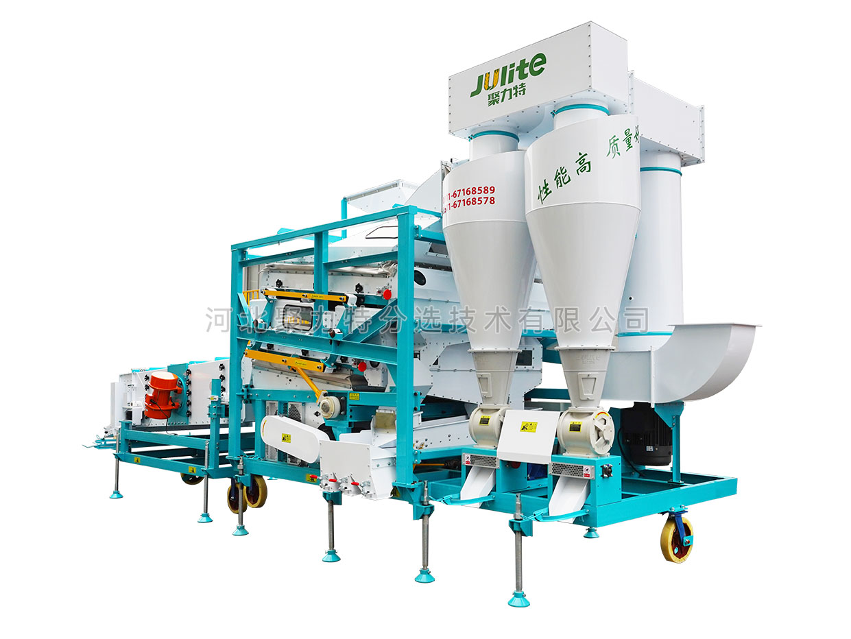 高粱篩選組合設(shè)備由雙體脫殼機(jī)、低速無(wú)破碎提升機(jī)、復(fù)式比重清選機(jī)、雙篩箱振動(dòng)篩組成。