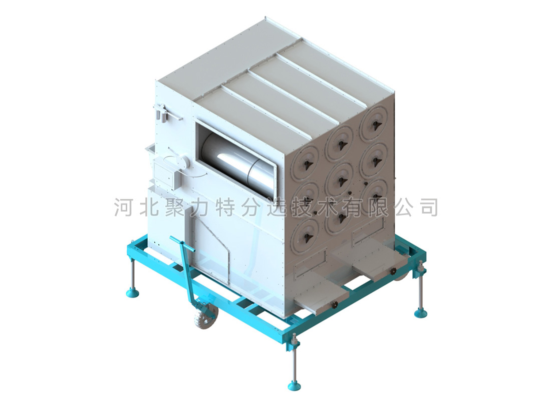 離心風(fēng)機吹出含塵氣流經(jīng)入風(fēng)口進入脈沖除塵箱,由于除塵箱和外部風(fēng)壓差的存在,含塵氣流會迅速通過脈沖除塵箱內(nèi)3×3均布的9個濾筒后排入外部空氣中,氣流中的粉塵被阻擋在濾簡外表面上,排入外部空氣中的則為過濾后的清潔空氣,最終完成含塵氣流的粉塵清除功能。脈沖噴吹控制儀接通脈沖電磁閥定期向濾筒內(nèi)部噴吹 0.6-0.8MPa 高壓空氣,高壓空氣由內(nèi)向外穿過濾筒,將附著在濾筒外表面上的粉塵除去,塵粒落入下部集塵斗,定期清理。