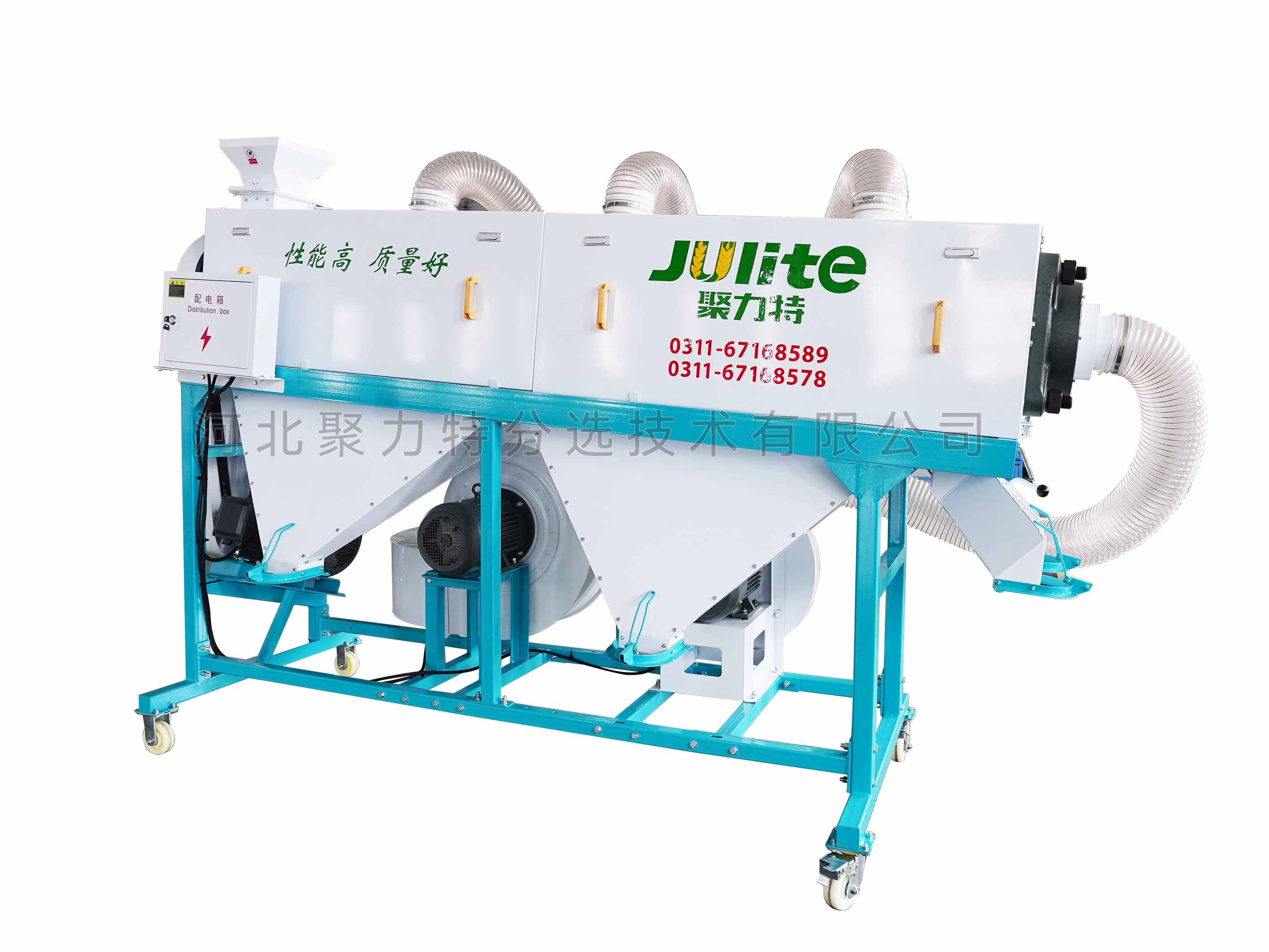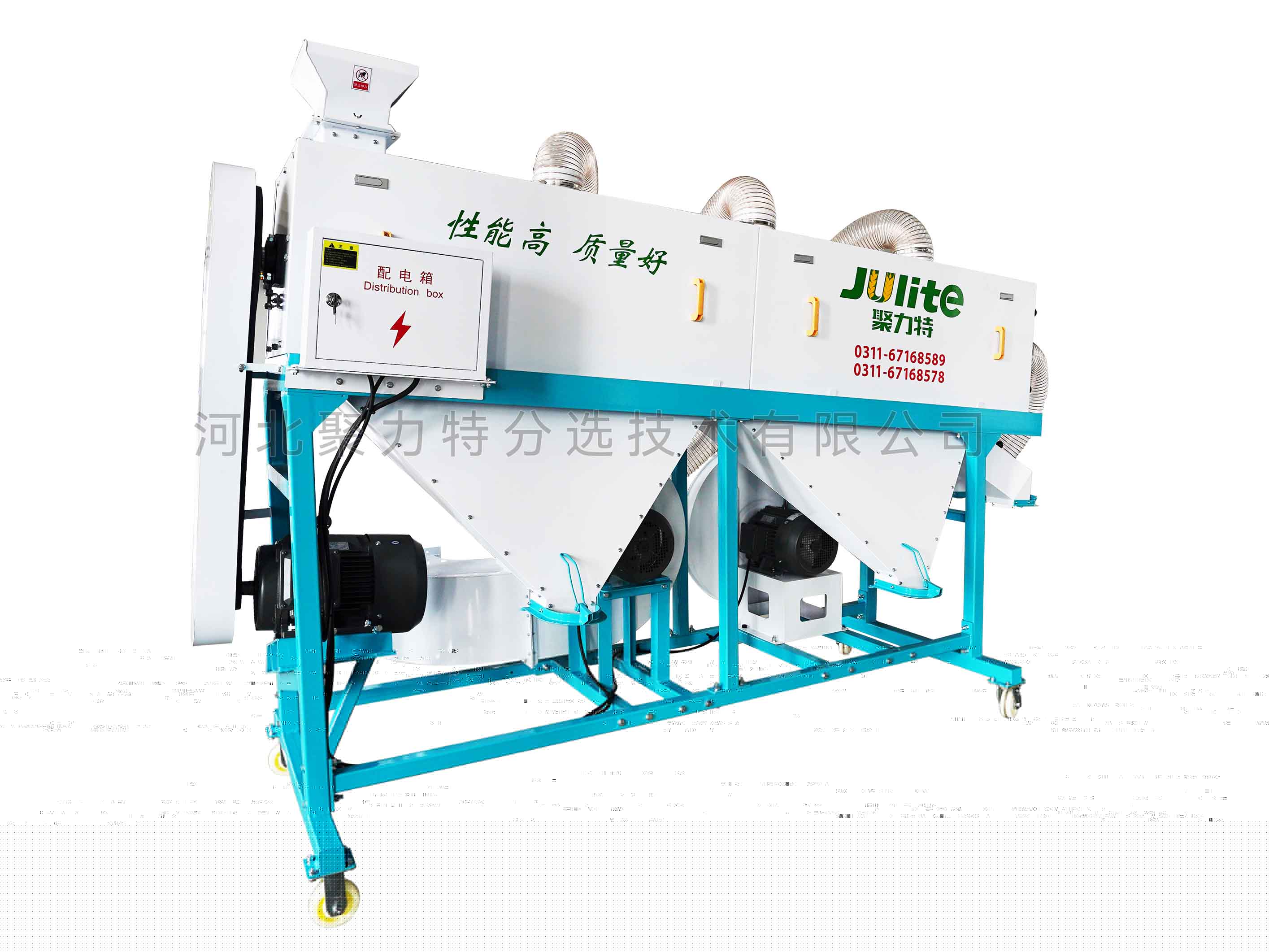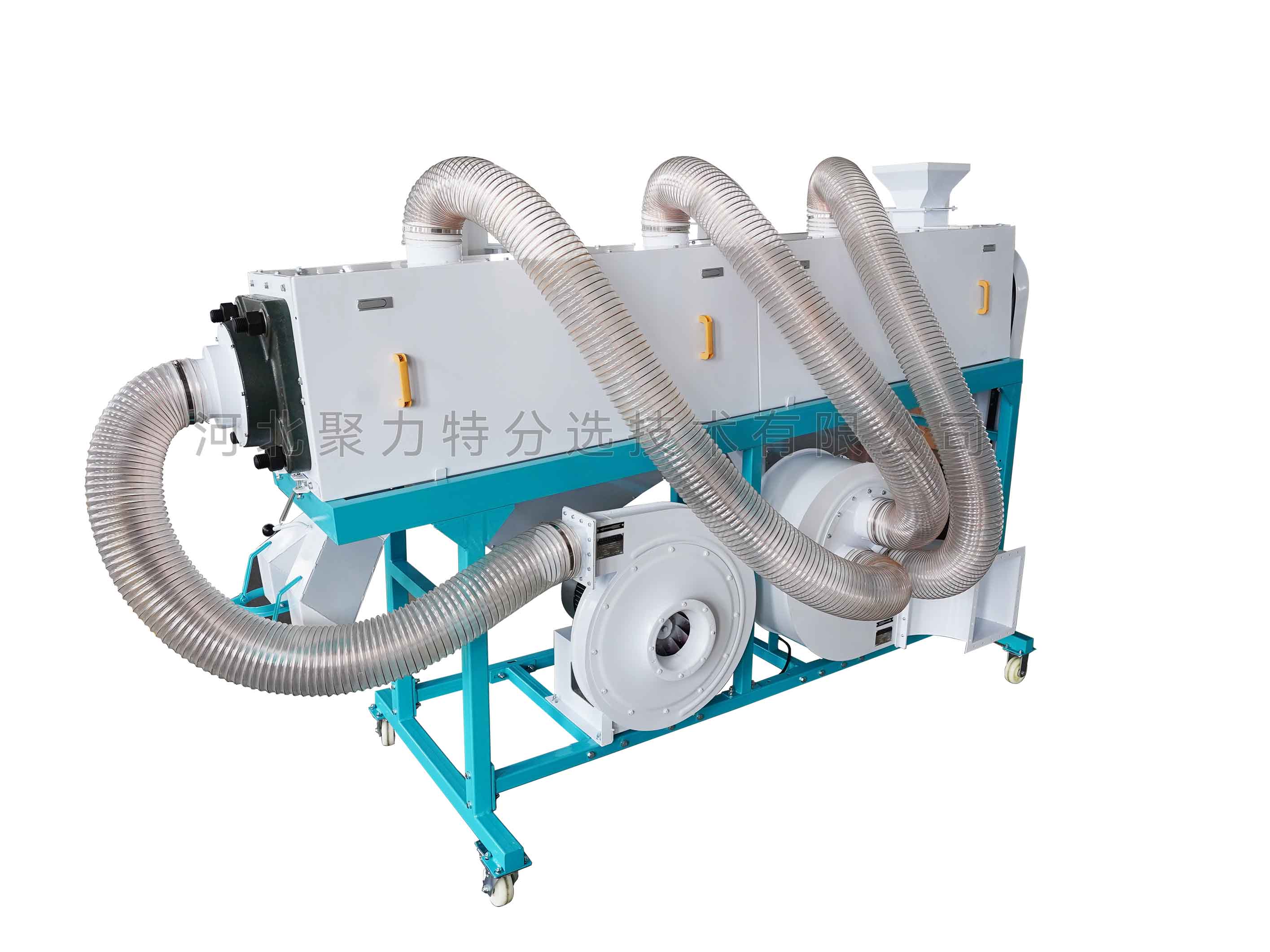利用螺旋傳動(dòng)運(yùn)送糧食的原理,使物料在流態(tài)化過(guò)程中互相置換位置,并與固定在拋光軸上的拋光布互相摩擦,從而有效去除物料表面的粉塵、豆皮、泥垢等附著物,將表皮拋光、擦亮,同時(shí)采用高壓吹氣一中壓抽氣的除塵方式,及時(shí)抽走拋下的粉塵,較重的輕雜(豆皮、泥垢等)掉入集塵箱集中排出,達(dá)到拋光增亮的效果,最終排出成品。